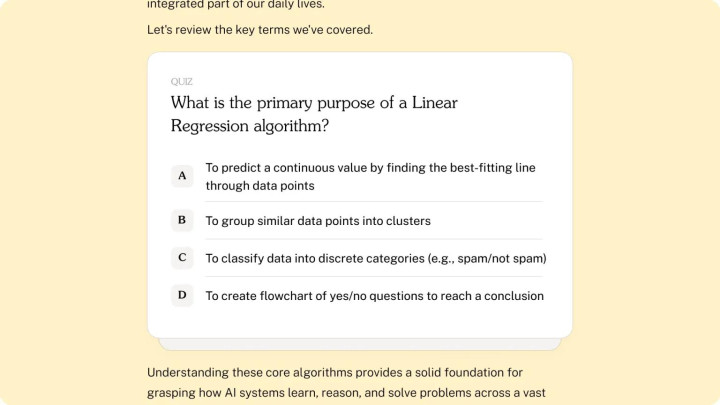 Oboe创立于2024年,是一家利用AI创建定制化课程的公司,其首款产品AI课程生成平台Oboe于今年9月上线,用户可以直接和AI对话课程需求,该平台会生成对应的学习目标和课程,包括文字版和音频版的课程,文字版课程内还有配图、表格和简单的测验选择题。